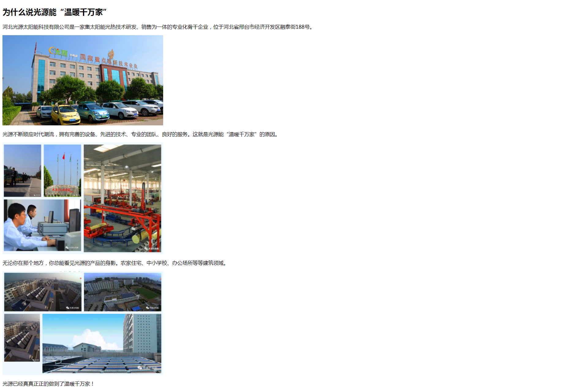 Copyright(C)2021 河北光源太陽能 E-mail: hbguangyuan@163.com 地址: 邢臺經濟開發(fā)區(qū)王快鎮北屋村永安路2199號 關于光源 | 公司動態(tài) | 聯系我們 | 法律聲明